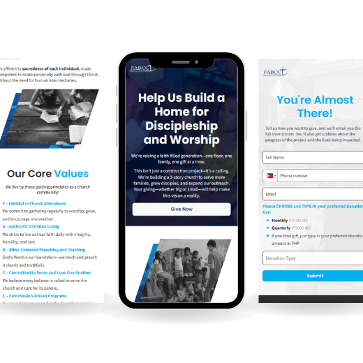 Create a high-converting donation landing page for a church fundraising initiative that inspires action, simplifies giving, and builds long-term donor commitment.